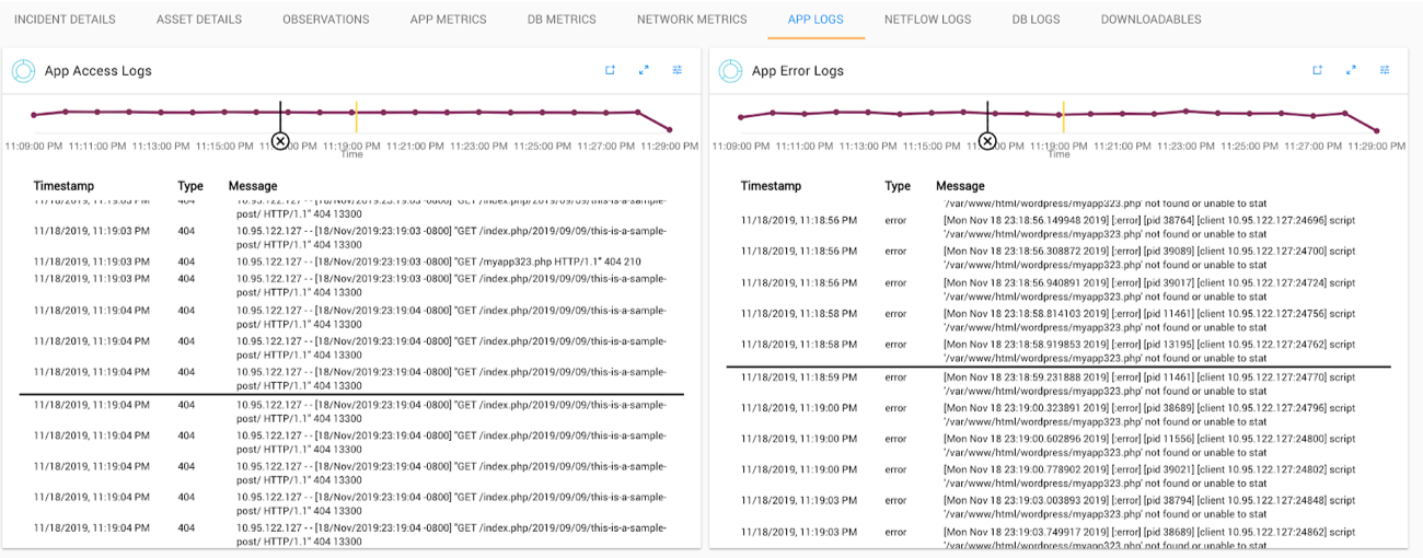 - Providing time-sync and time-markers to compare metric and logs across multiple assets