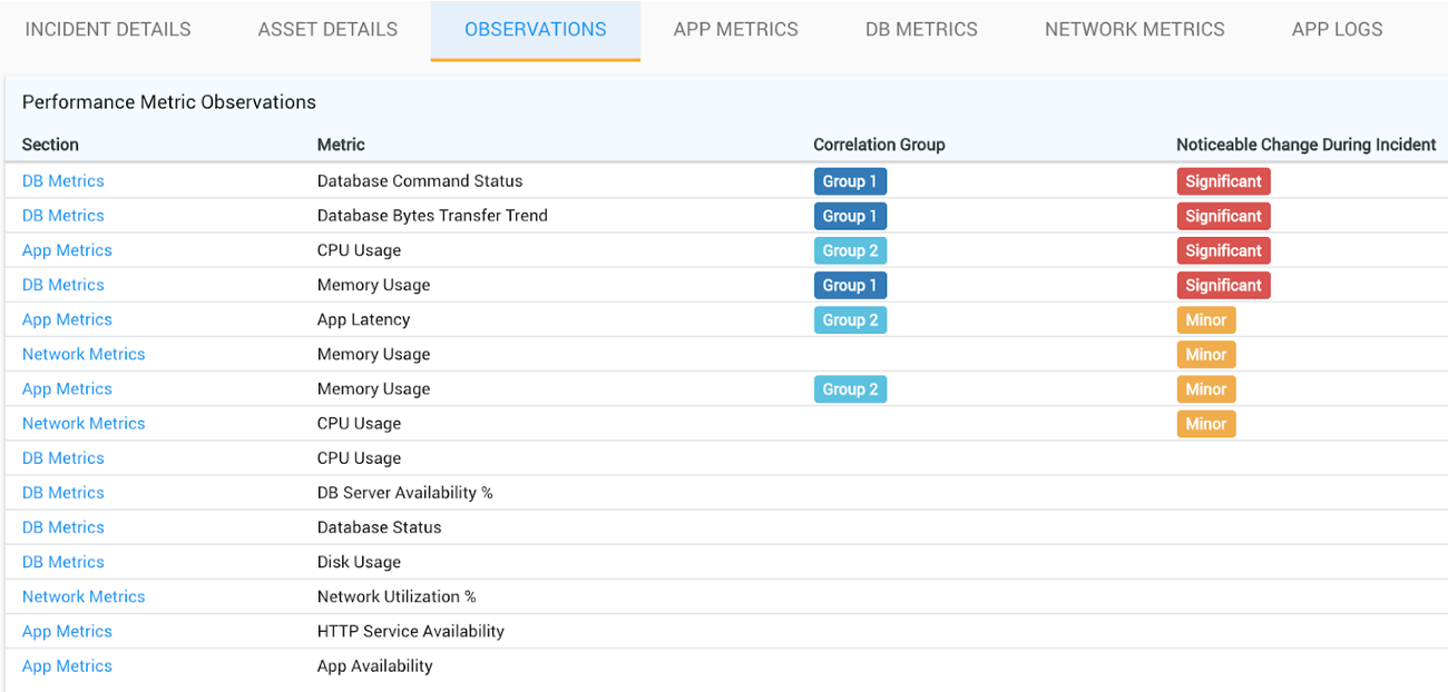 - Enabling faster investigation and root cause identification by highlighting metrics that have noticeable changes