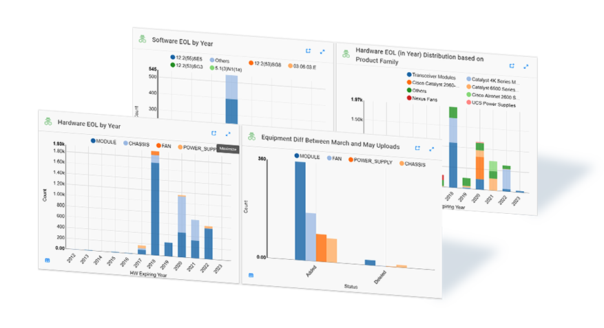 cfxRealize provides complete visibility into asset lifecycle. It has proactive reporting so that End of Life(EOL), End of Support(EOS) assets are identified thereby allowing the organization to mitigate risks associated with unsupported assets or using non compliance assets.