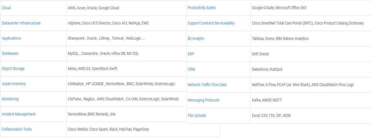 Secondly, cfxRealize comes with 100+ dataset integrations which can ingest data from almost all commonly used hardware and software assets. At the same, it has built in ability to connect and retrieve details from cloud/SaaS subscription-based assets. The connector framework , part of the platform, allows easy extensibility of any dataset not supported out-of-box.