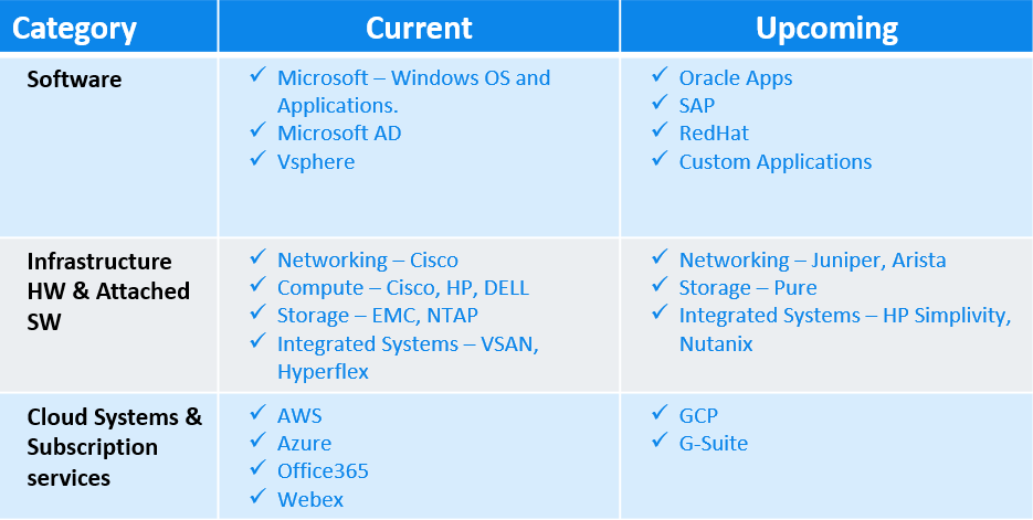 cfxRealize drive customer value and adaptation of software utilizing business outcomes KPIs driven by advanced analytics. The following diagram shows the current and upcoming support to various assets (Hardware, software and cloud)